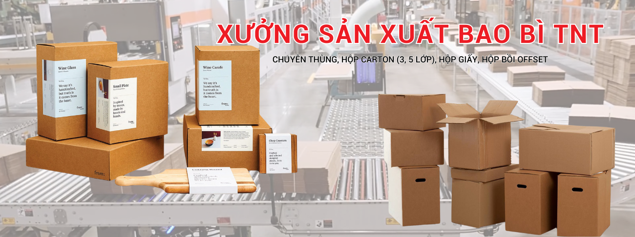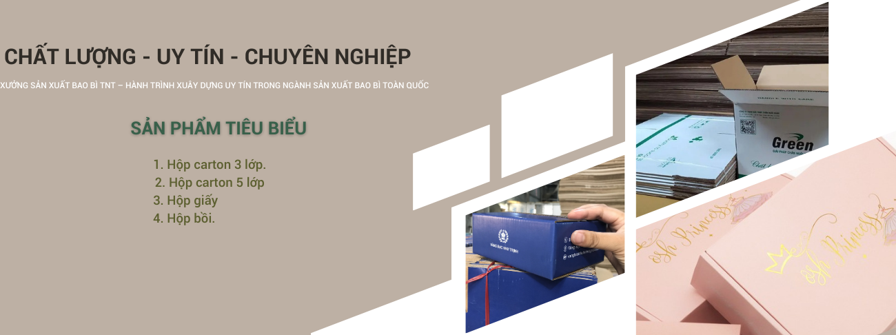 XƯỞNG SẢN XUẤT BAO BÌ TNT là đơn vị chuyên sản xuất bao bì carton, bao bì giấy uy tín, chất lượng, giá cạnh tranh. Hoạt động trên 6 năm trong lĩnh vực in ấn bao bì và gia công thành phẩm tất cả các loại thùng, hộp chất liệu carton, giấy… xưởng bao bì carton TNT tự hào cung cấp ra thị trường trên 2 triệu thùng/hộp mỗi tháng.